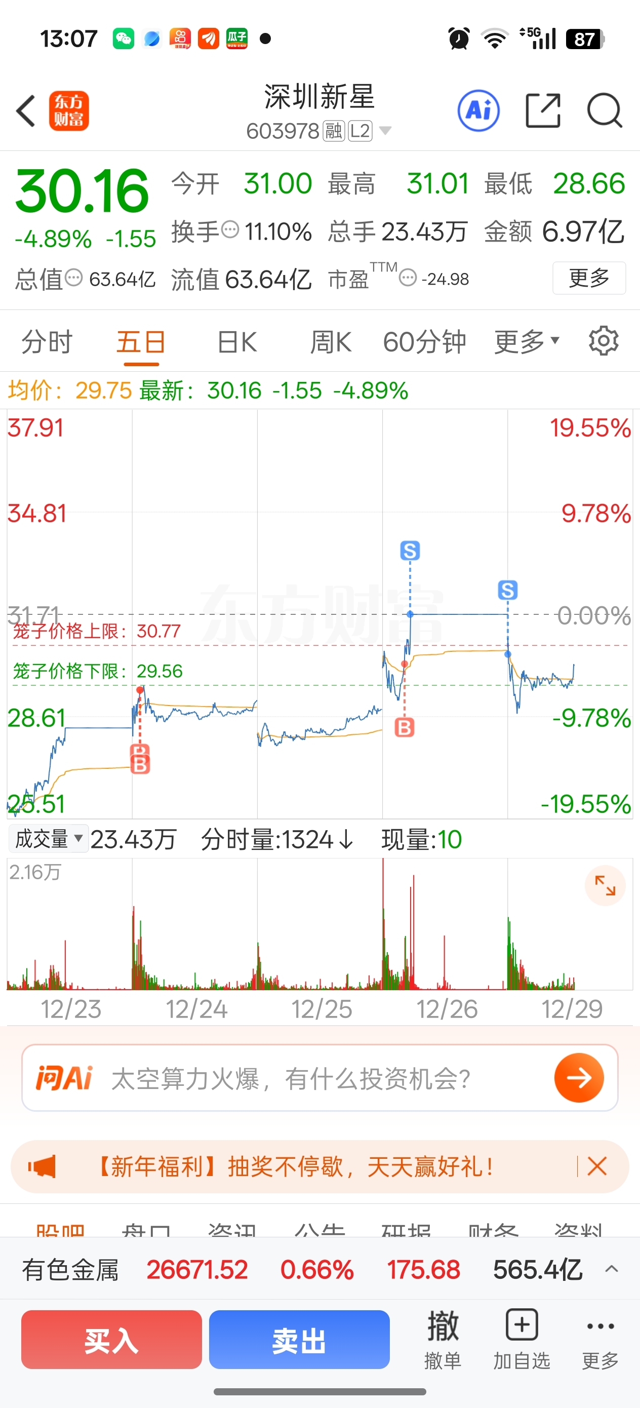 $深圳新星(SH603978)$ 多气人
