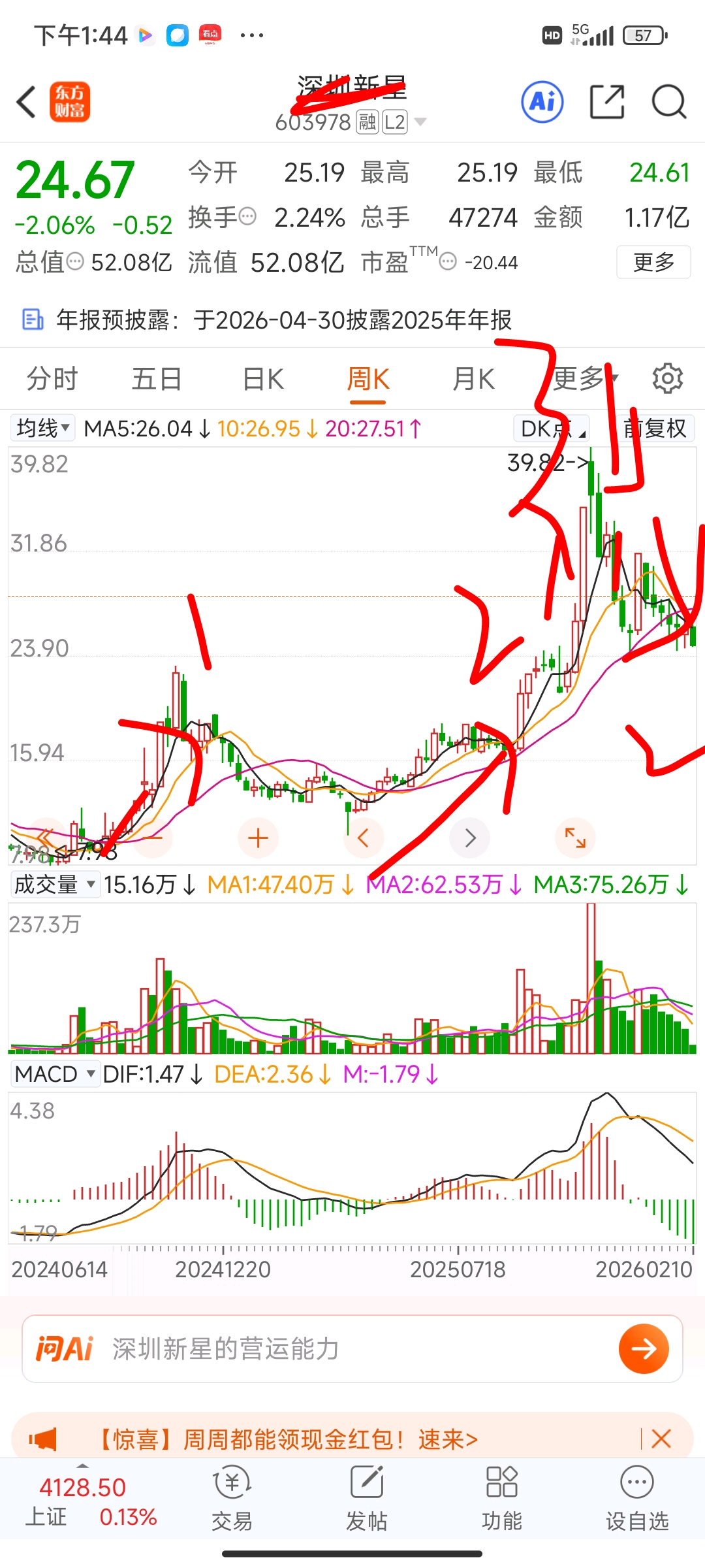 $深圳新星(SH603978)$ 下跌才第二浪还没有结束,还有第三浪