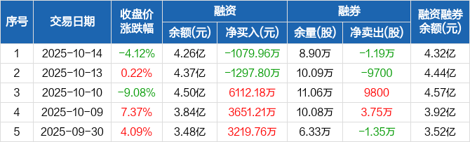 金诚信:融资净偿还1079.96万元,融资余额4.26亿元(10-14)