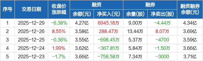 金诚信:融资净买入6945.18万元,融资余额4.27亿元(12-29)