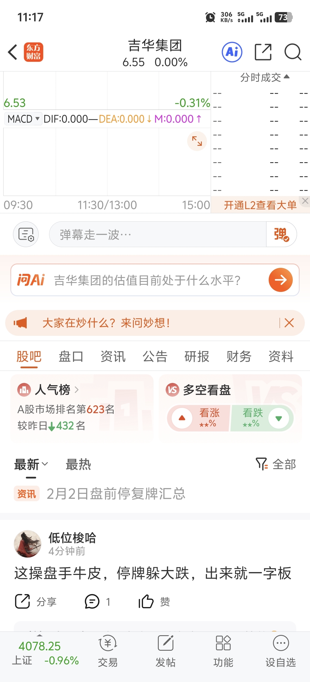 $吉华集团(SH603980)$ 这人气嘎嘎往下掉。估计得废了