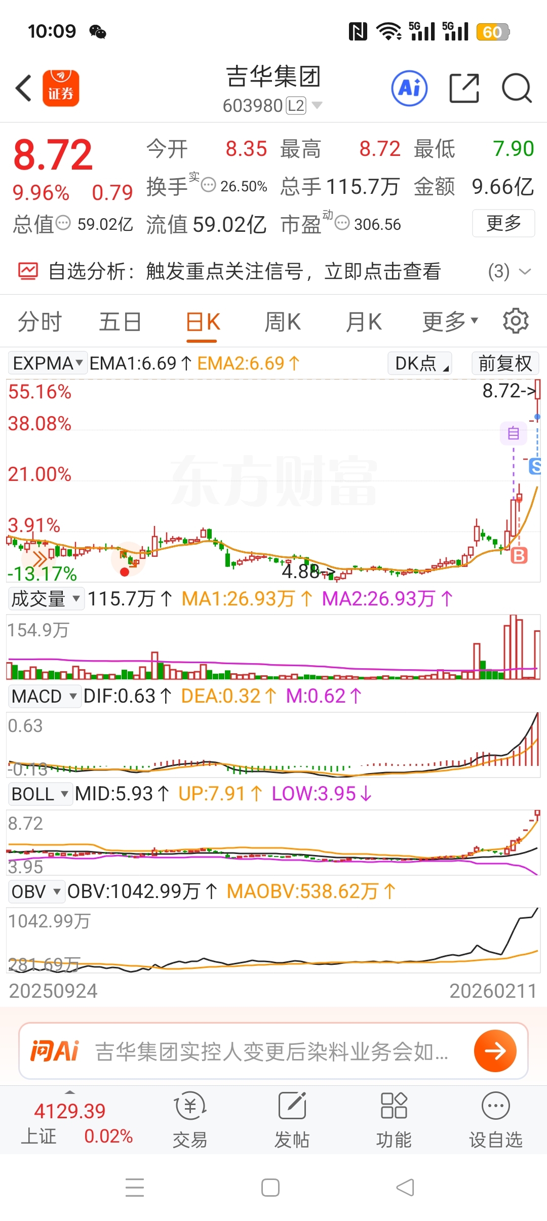 $吉华集团(SH603980)$ 凭运气买到的,卖飞也正常吧……