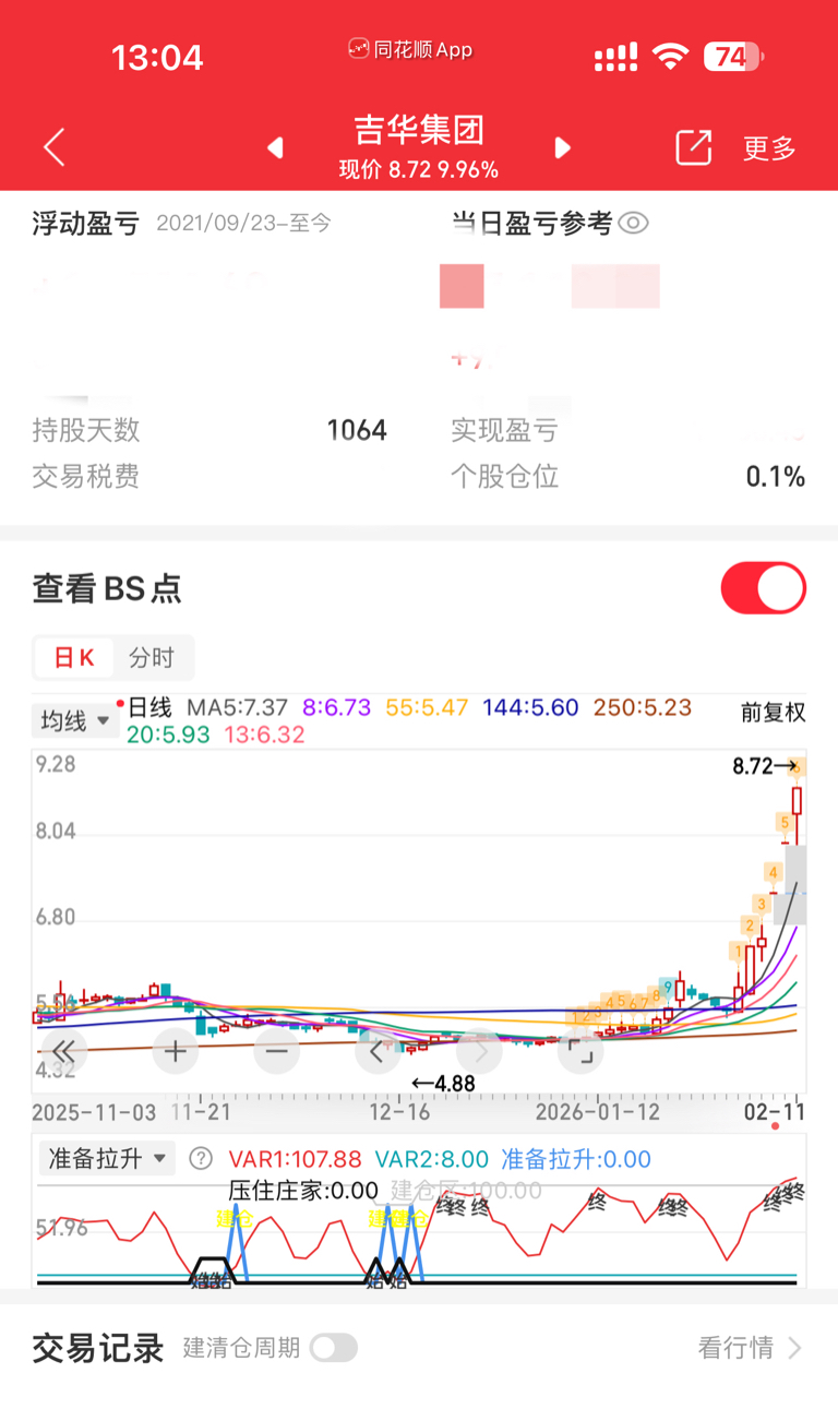 $吉华集团(SH603980)$ 散户有谁比我拿的还久?
