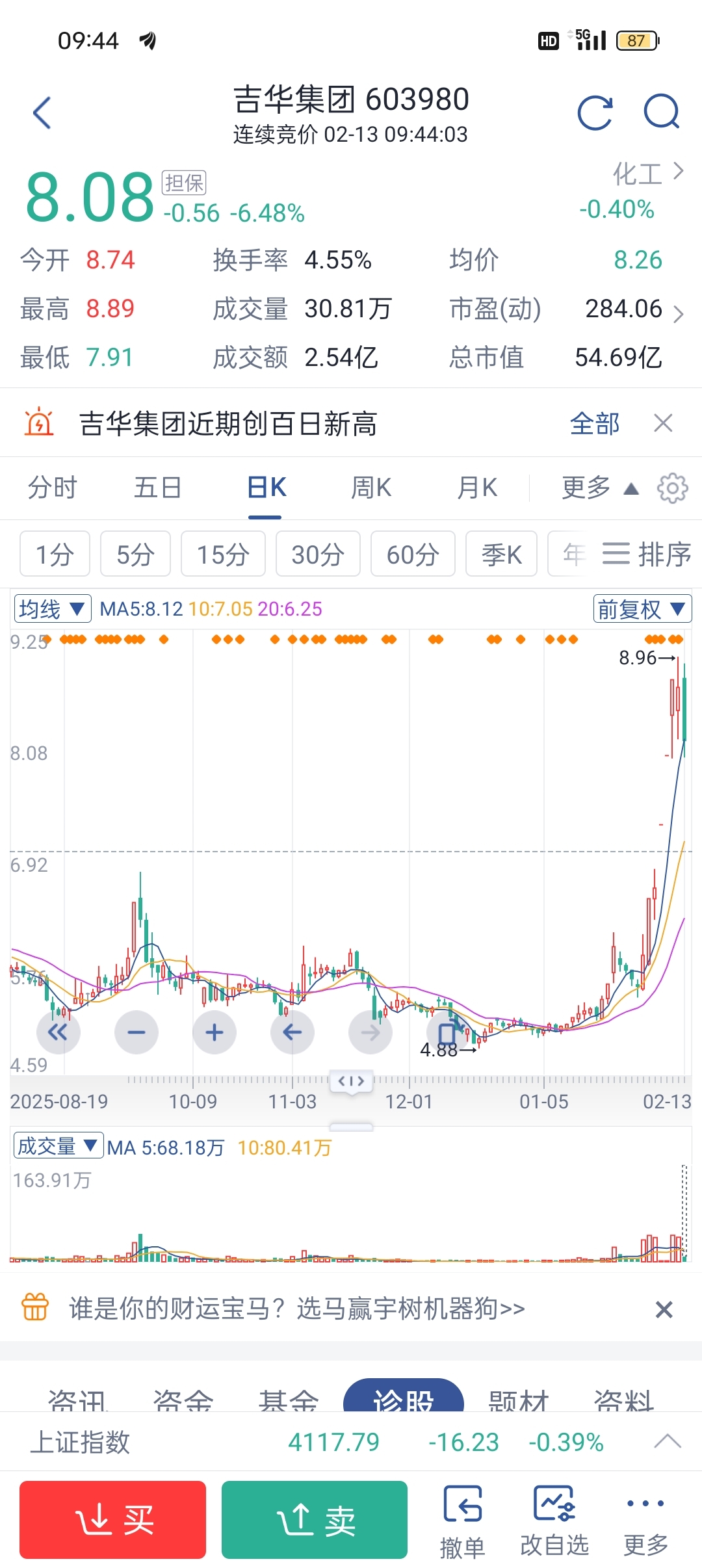 吉华集团,主力需要回调来降低持仓成本,高抛低吸是降低成本的最有效的方法。不会降低