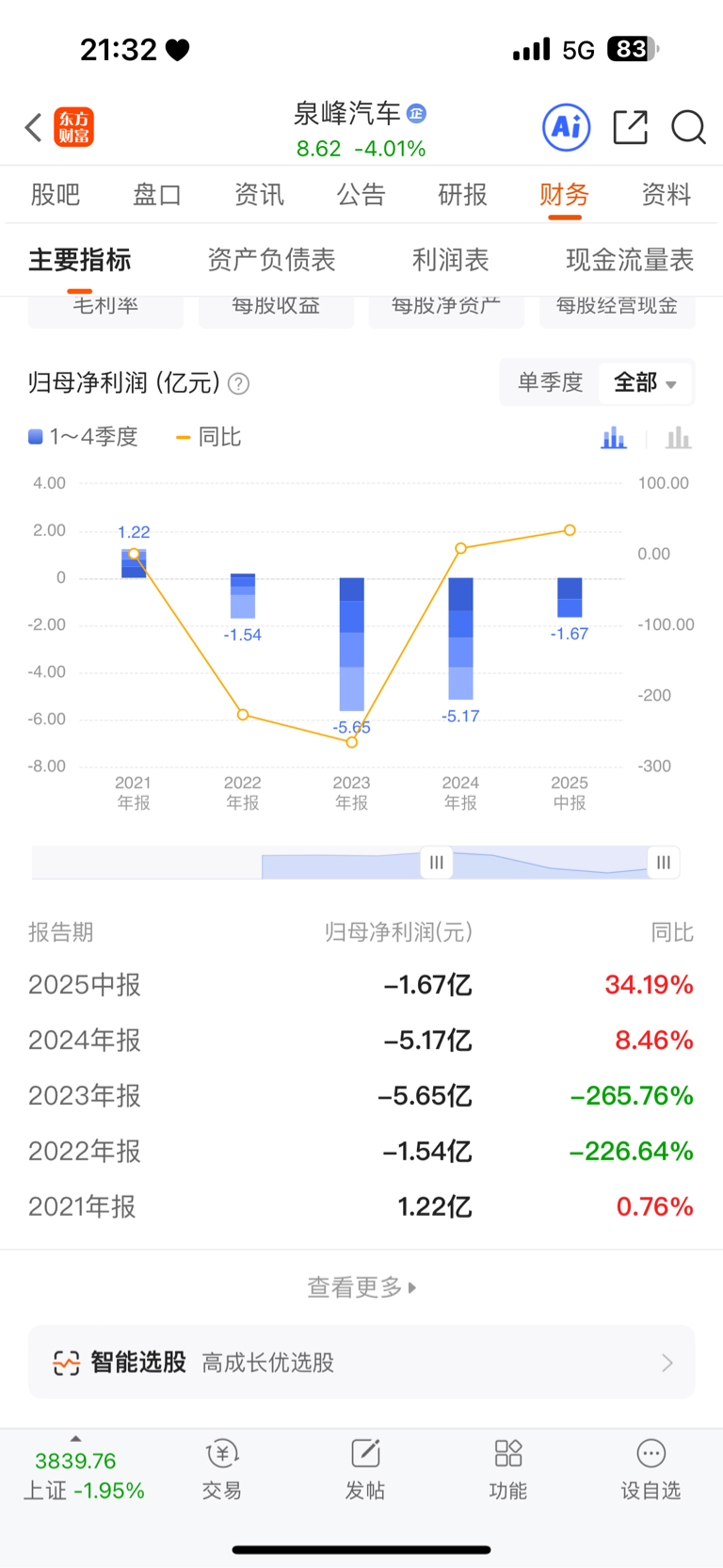 $泉峰汽车(SH603982)$ 请问汽车零部件那个不是赚钱的?这个公司没问题为什么会连年巨额亏损?没有无缘无故的跌,而且今年大牛市行情,此股却走成这样?你们不应该用脑子去想一想吗?