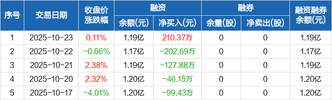 泉峰汽车:融资净买入210.37万元,融资余额1.19亿元(10-23)