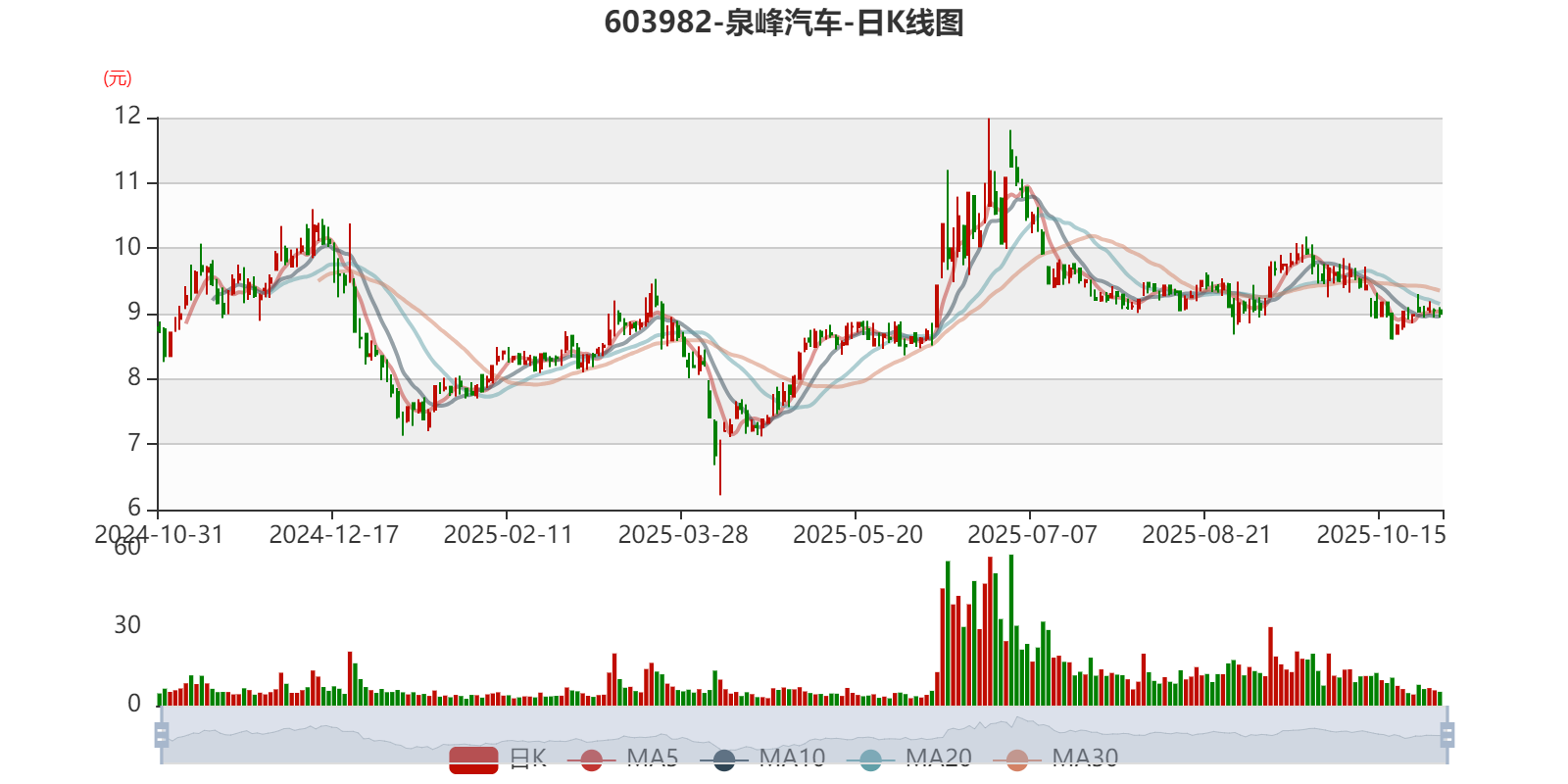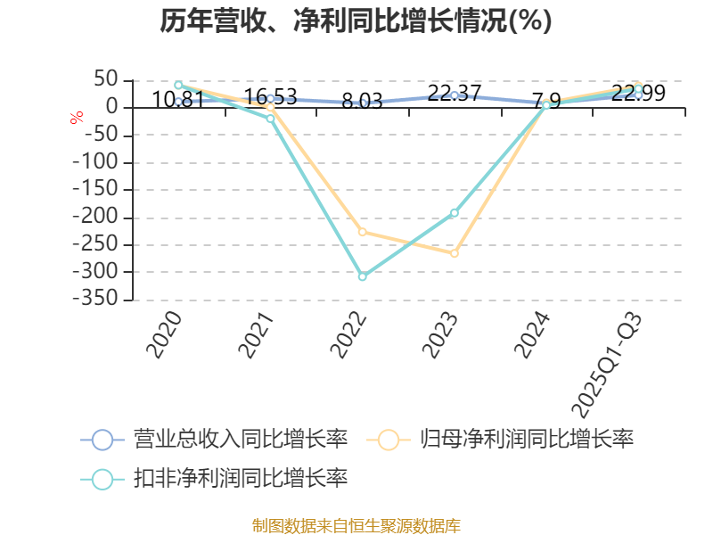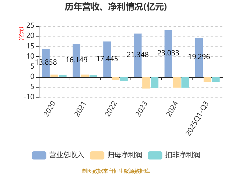 中证智能财讯泉峰汽车(603982)10月31日披露2025年第三季度报告。前三季度公司实现营业总收入19.3亿元,同比增长22.99%;归母净利润亏损2.3亿元,上年同期亏损3.8亿元;扣非净利润亏损2.39亿元,上年同期亏损3.64亿元;经营活动产生的现金流量净额为1.57亿元,上年同期为-2.13亿元;报告期内,泉峰汽车基本每股收益为-0.7964元,加权平均净资产收益率为-12.25%。
