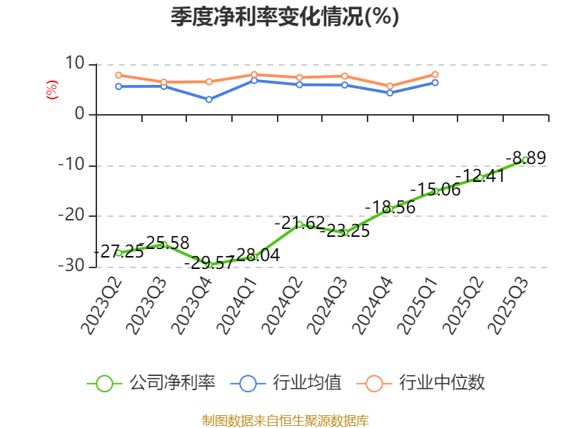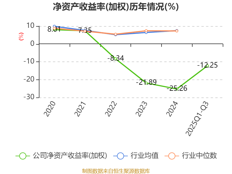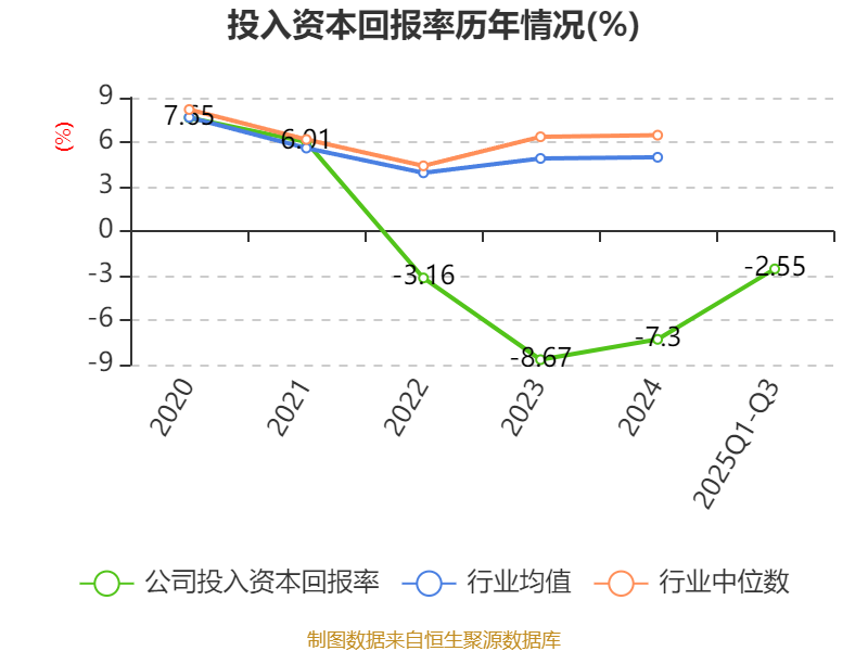 盈利能力方面, 2025年前三季度公司加权平均净资产收益率为-12.25%,同比上升7.46个百分点。公司2025年前三季度投入资本回报率为-2.55%,较上年同期上升2.98个百分点。