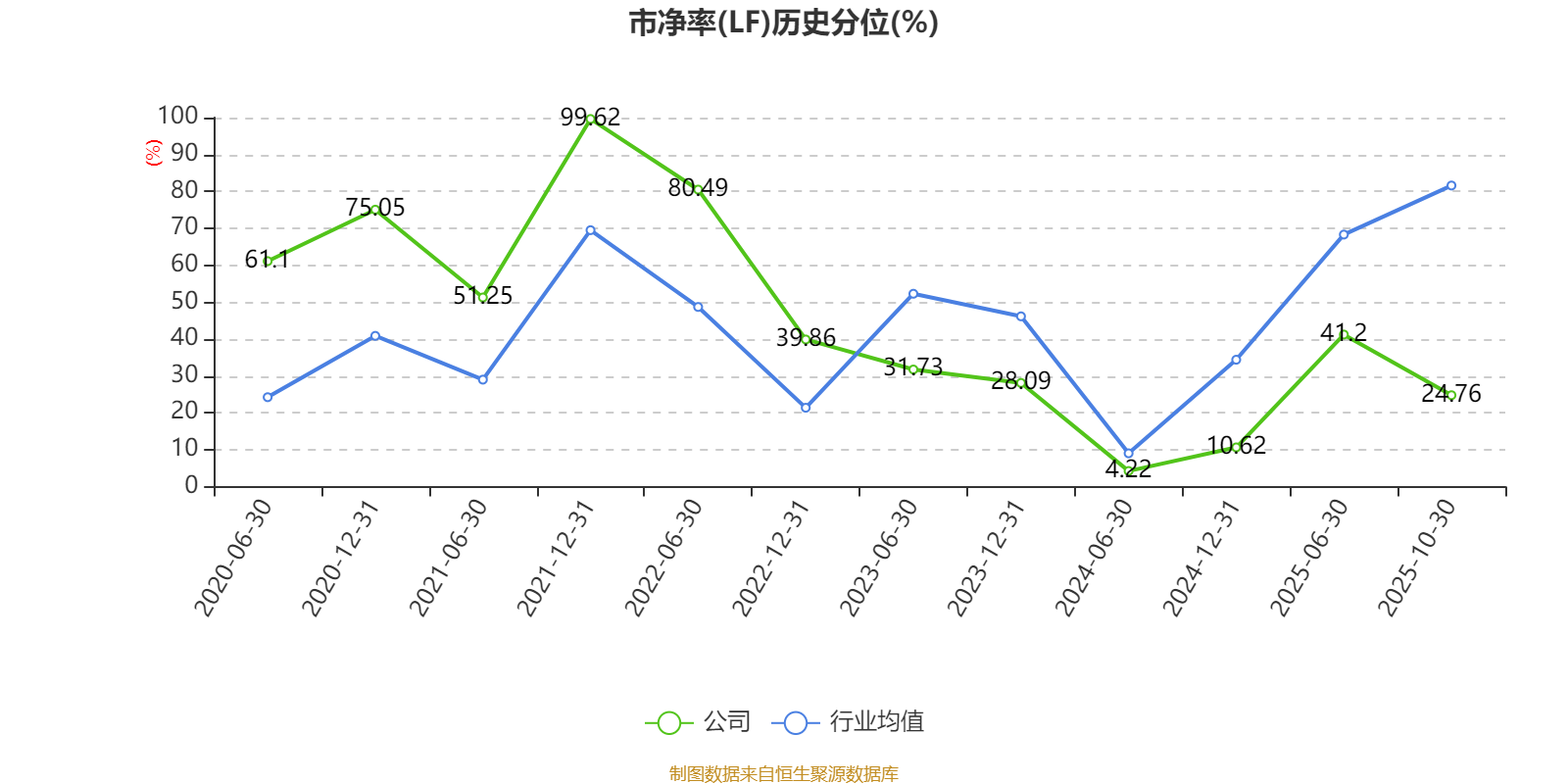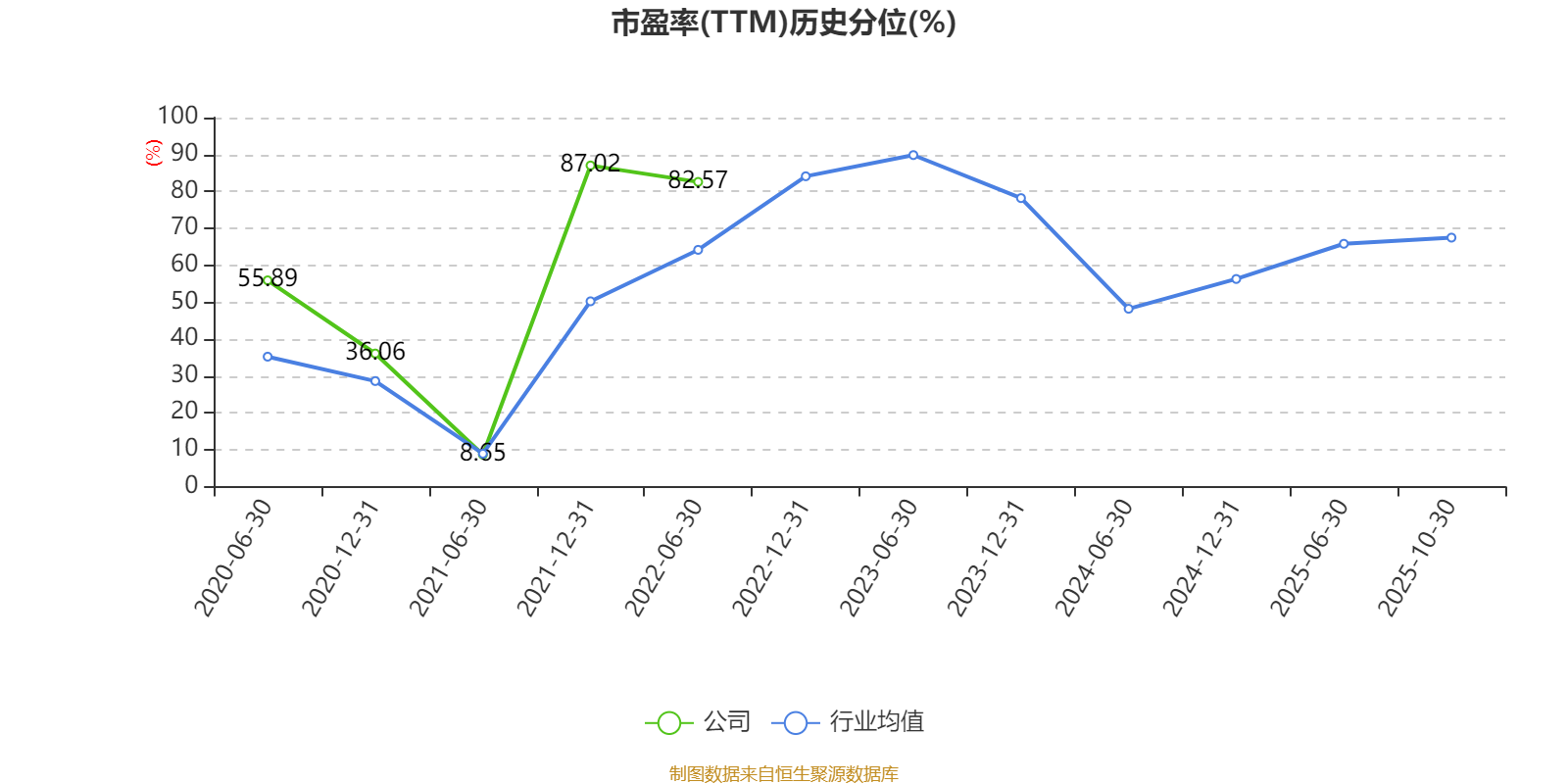 市盈率、市净率为负时,不显示当期分位数,会导致折线图中断。