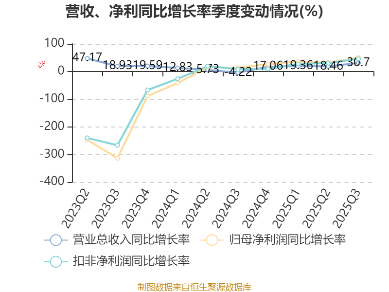 资产重大变化方面,截至2025年三季度末,公司固定资产较上年末减少1.89%,占公司总资产比重下降2.71个百分点;货币资金较上年末增加29.95%,占公司总资产比重上升2.05个百分点;在建工程合计较上年末增加17.7%,占公司总资产比重上升1.19个百分点;应收票据及应收账款较上年末减少1.85%,占公司总资产比重下降0.77个百分点。