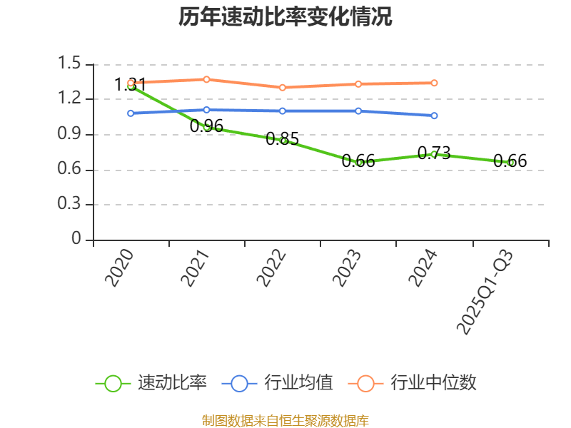 2025年前三季度,公司流动比率为0.94,速动比率为0.66。