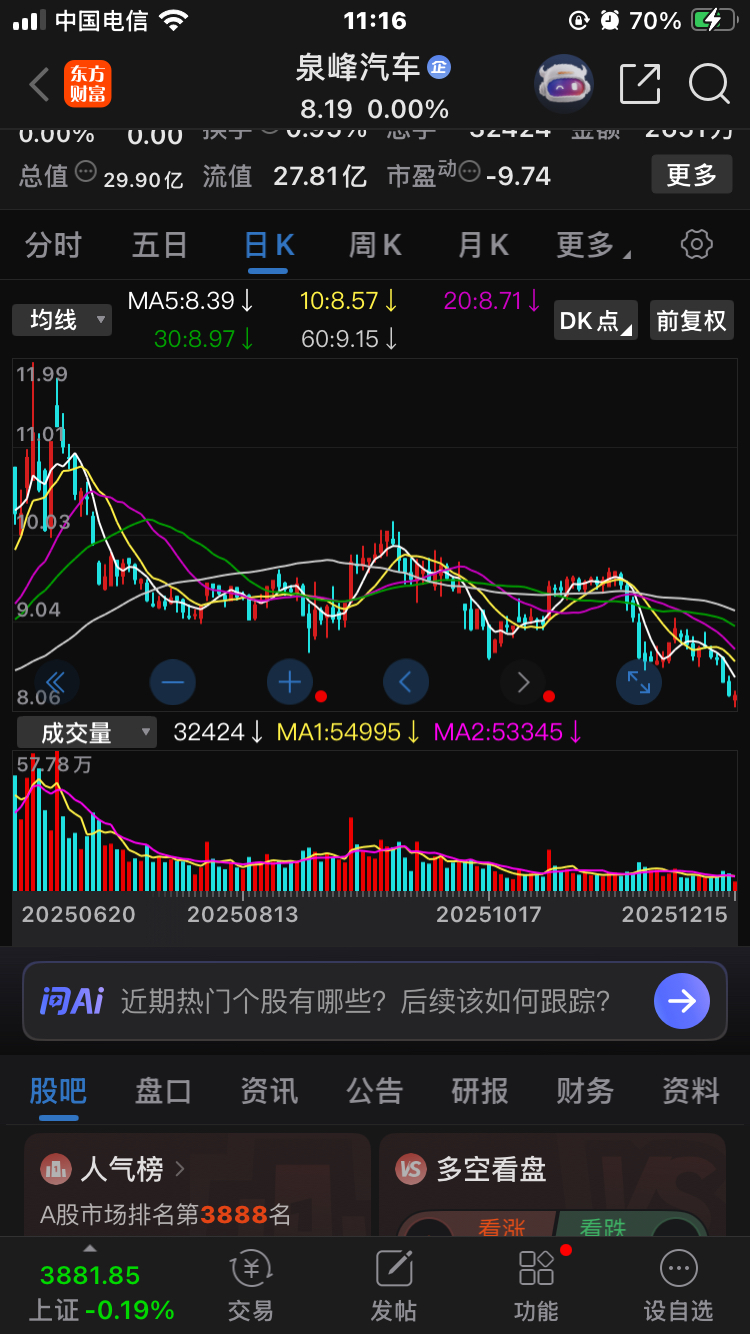 $泉峰汽车(SH603982)$ 趋势是走坏了,想拿三五年的可以死杠,不等三五年的早点止损。