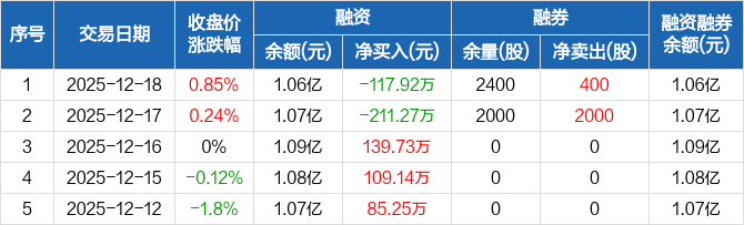 泉峰汽车:融资净偿还117.92万元,融资余额1.06亿元(12-18)