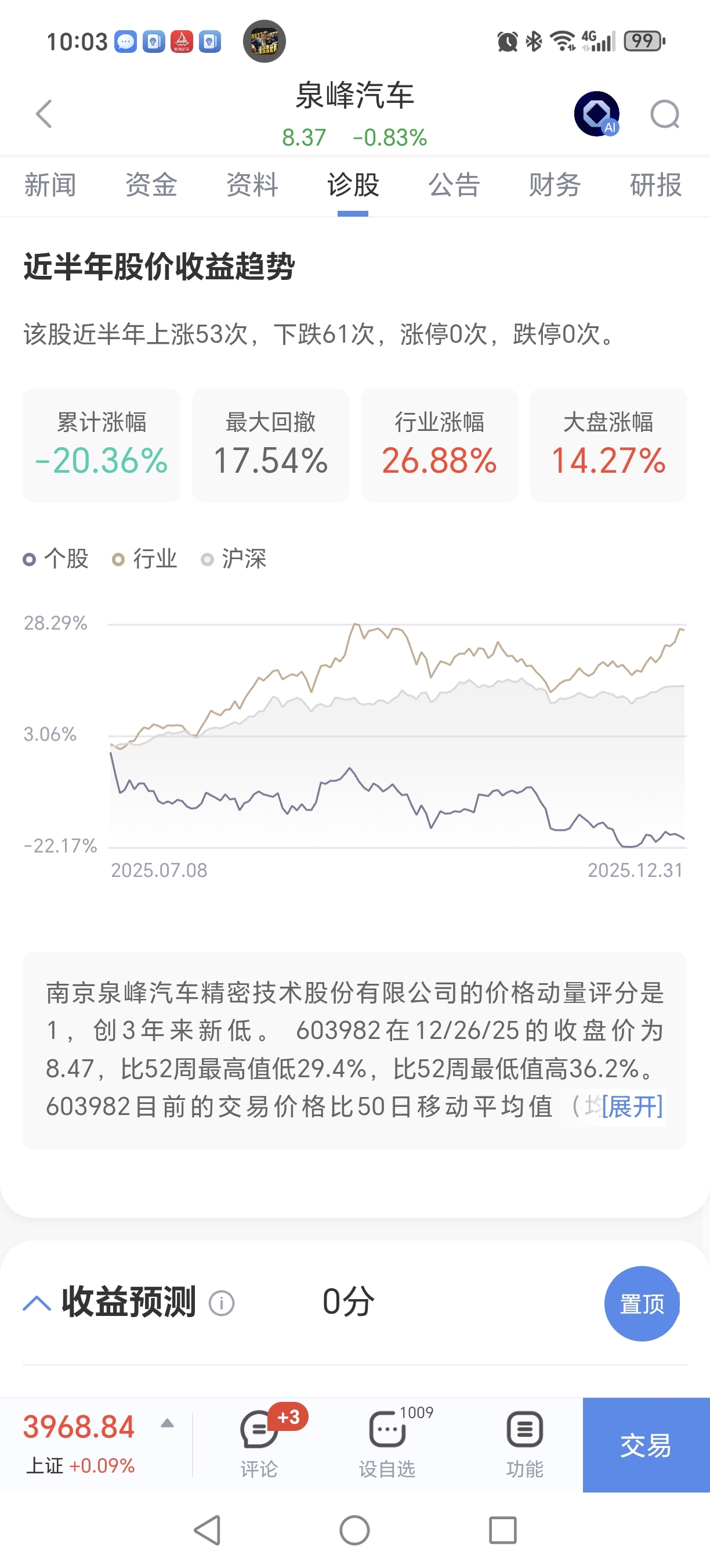 $泉峰汽车(SH603982)$ 半年跌幅二十几,行业涨幅二十几,一来一回落后行业涨幅四十几!落后大盘涨幅三十大几!