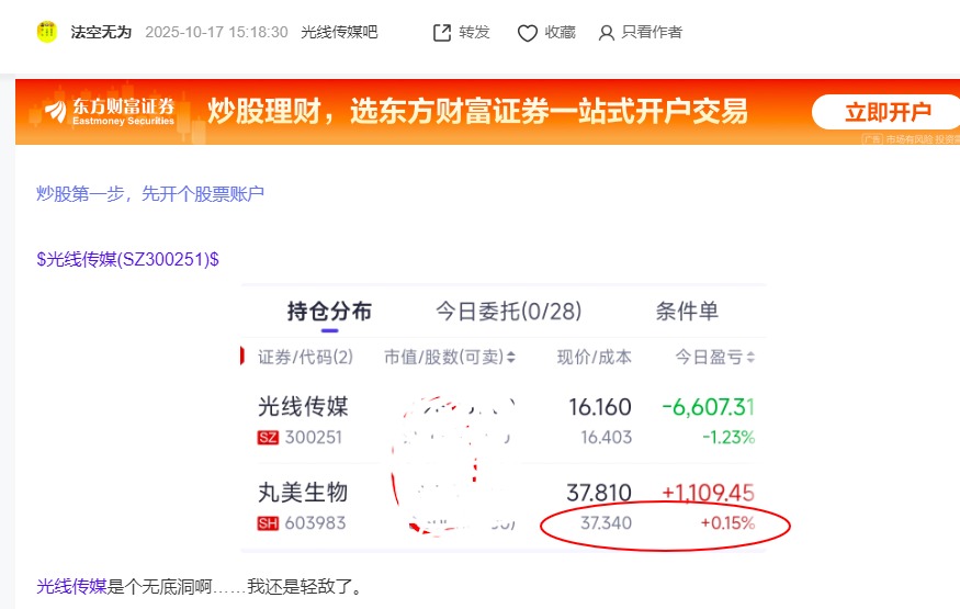 要防止被股吧里这些爱吹牛的人带节奏,跟“大路朝天阔”一路货,17号收盘后在光线传