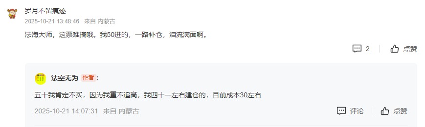 要防止被股吧里这些爱吹牛的人带节奏,跟“大路朝天阔”一路货,17号收盘后在光线传媒的股吧里晒图,丸美成本37块多,18号19号闭市,20号丸美跌破年线,今天自称做了个t,然后成本就已经到30附近了。