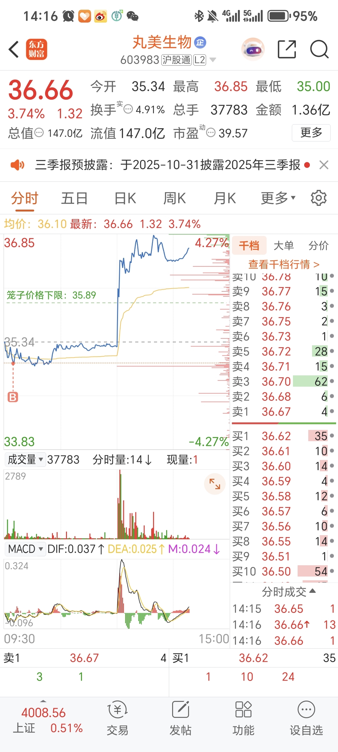 $丸美生物(SH603983)$ 昨天尾盘想买的,最终决定今天早盘下杀完成走势就买。
