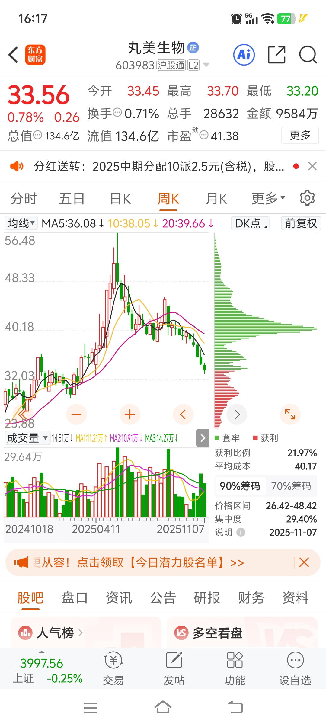 $丸美生物(SH603983)$ 主力高位派了很多筹码,现在砸下来有拿不到,高位接盘的小散五十多的都还在,一点都不割肉,平均成本都40多一点,主力怎么拉?