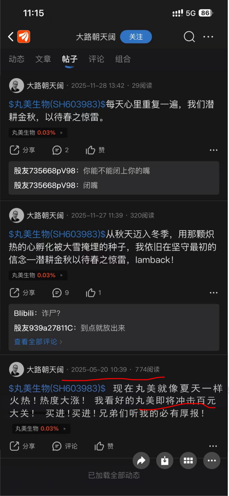 $丸美生物(SH603983)$ 快看!大路朝天阔拉人头割韭菜有图有真相!!!2025年520最高点56元鼓吹冲击百元拉人接盘随即开始下跌之路,到35继续鼓吹即将冲击40上80,即将腰斩了