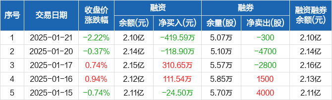 恒润股份:融资净偿还419.59万元,融资余额2.1亿元(01-21)