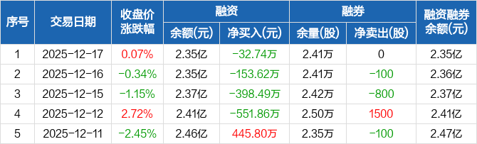 恒润股份:连续4日融资净偿还累计1136.71万元(12-17)