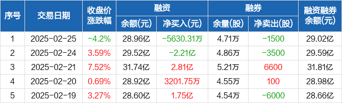 兆易创新:融资净偿还5630.31万元,融资余额28.96亿元(02-25)