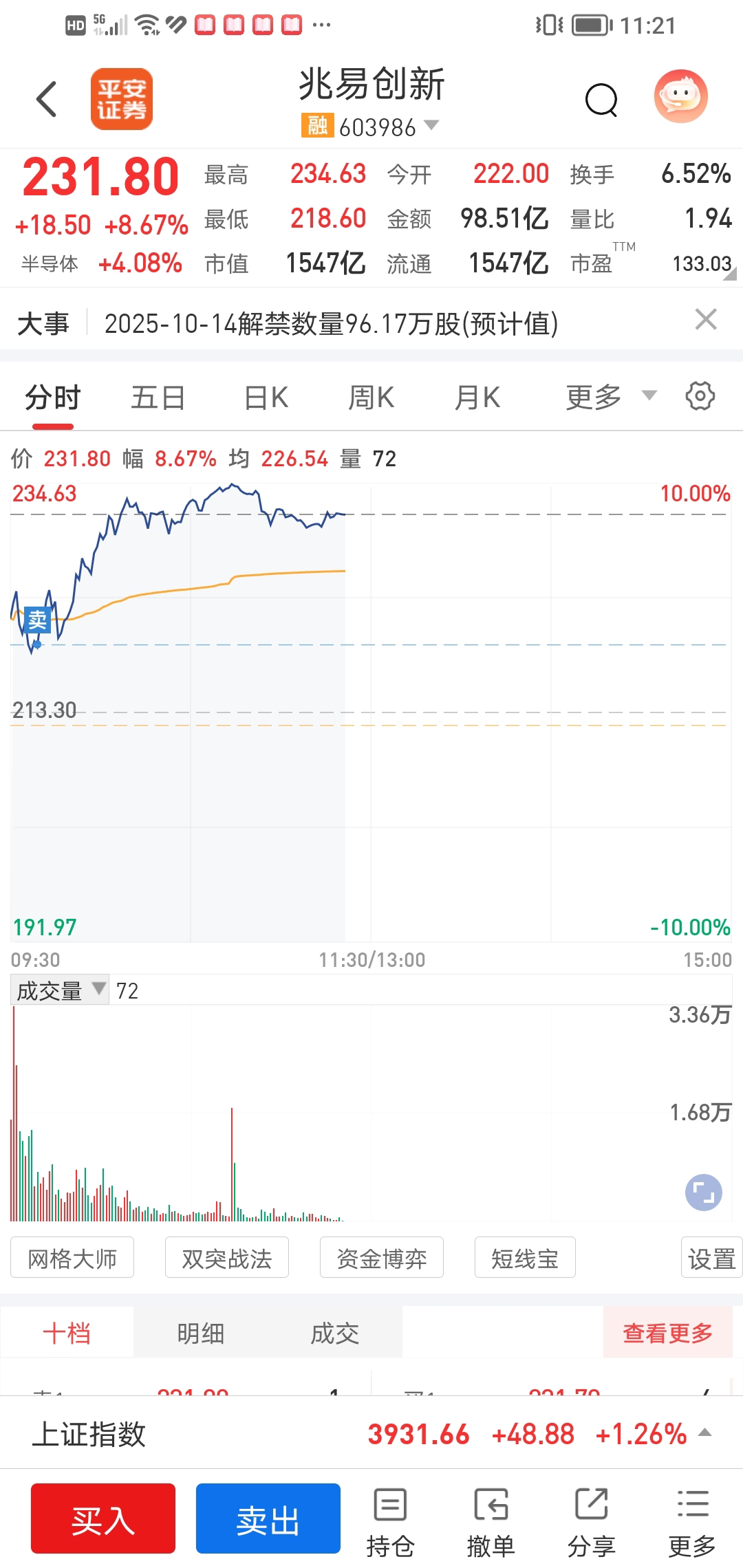 $兆易创新(SH603986)$ 憋了八天了,凌晨4.5点才睡着,梦见跌了5.6个点醒了,点开直接卖了。还是负了赵姨,尾盘看看能不能把她接回来。