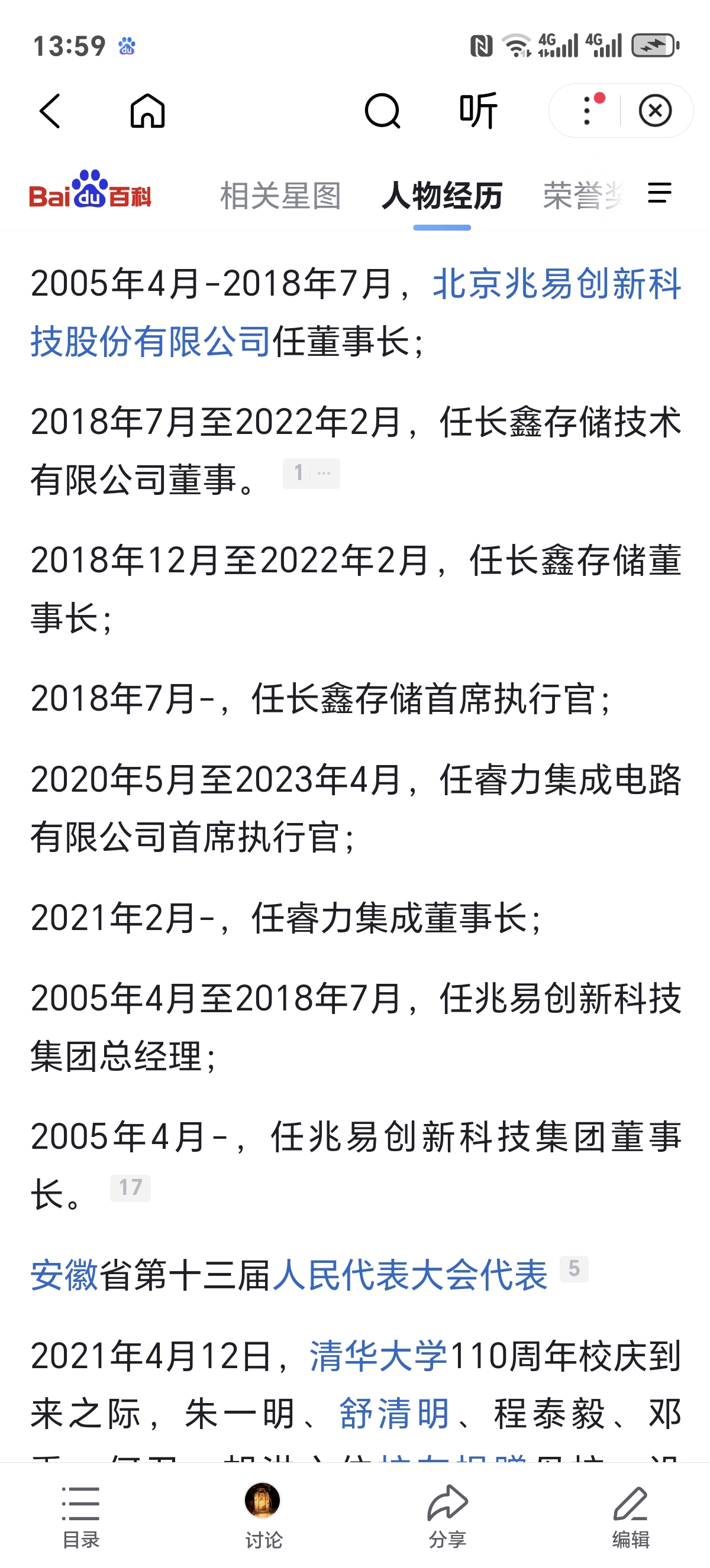 $兆易创新(SH603986)$ 33岁时候,也就我现在这么大,创立了这家公司,成了长鑫存储董事,现在也才53岁