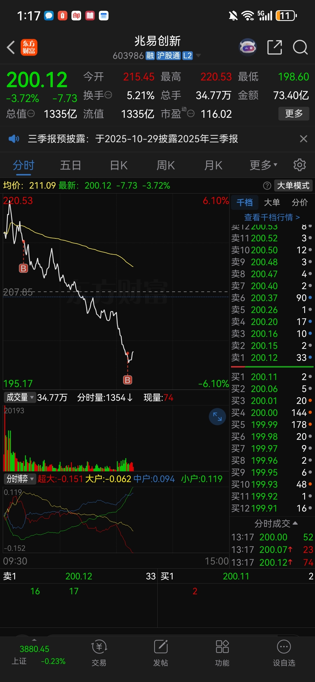 $兆易创新(SH603986)$ 早上买200股,现在再买200股,我已经尽力了,因为我是小小散户!不是模拟盘