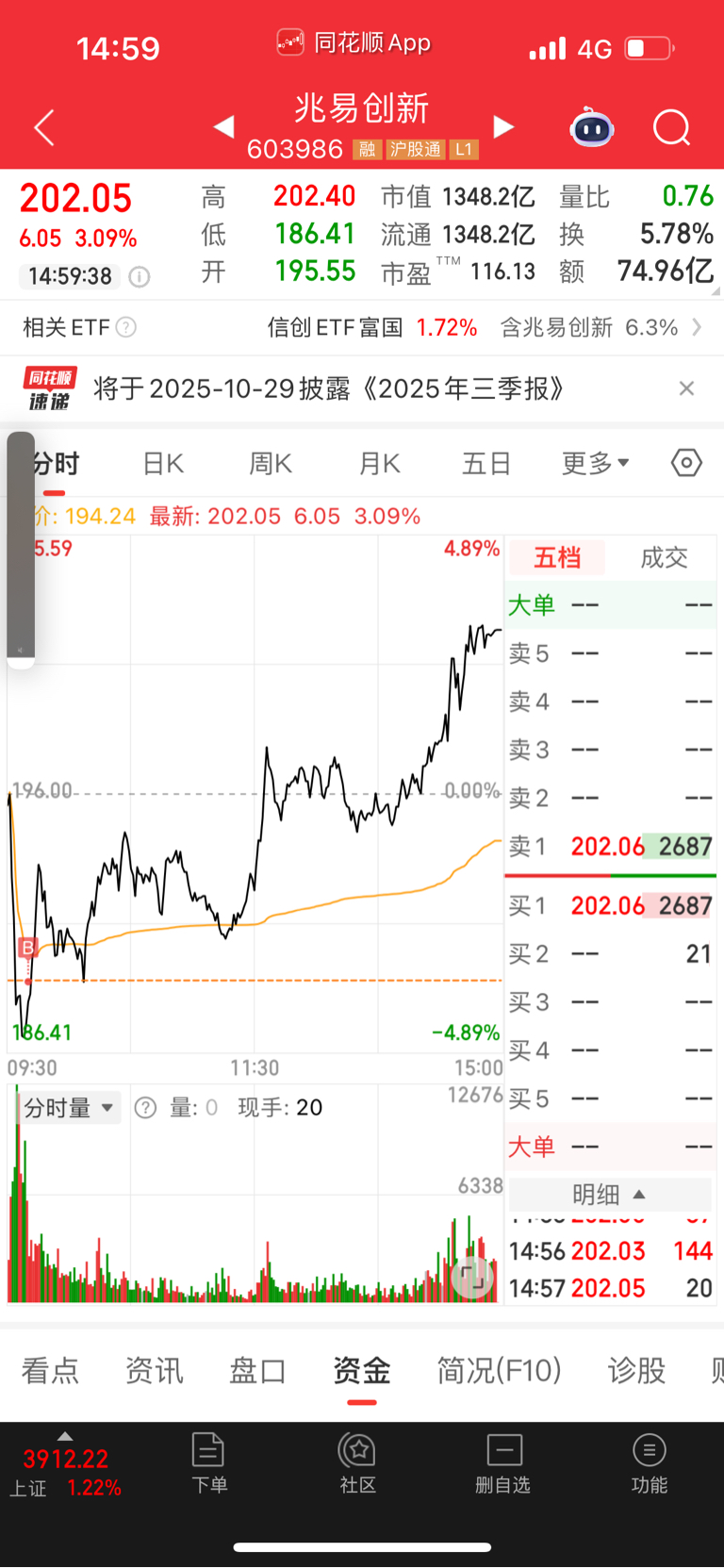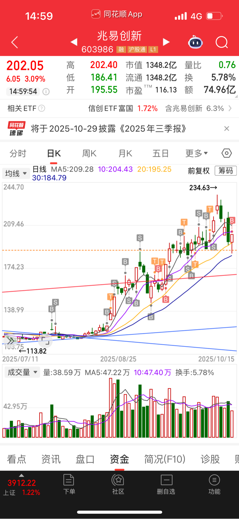早盘兆易买了半仓,虽然186区域价格没抢到,但是下午开始走强,资金强势买入,也算吃到一口肉了,短期还需观察是否能站稳208以上价格!