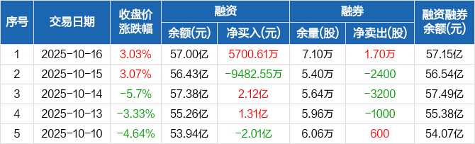 兆易创新:融资净买入5700.61万元,融资余额57亿元(10-16)