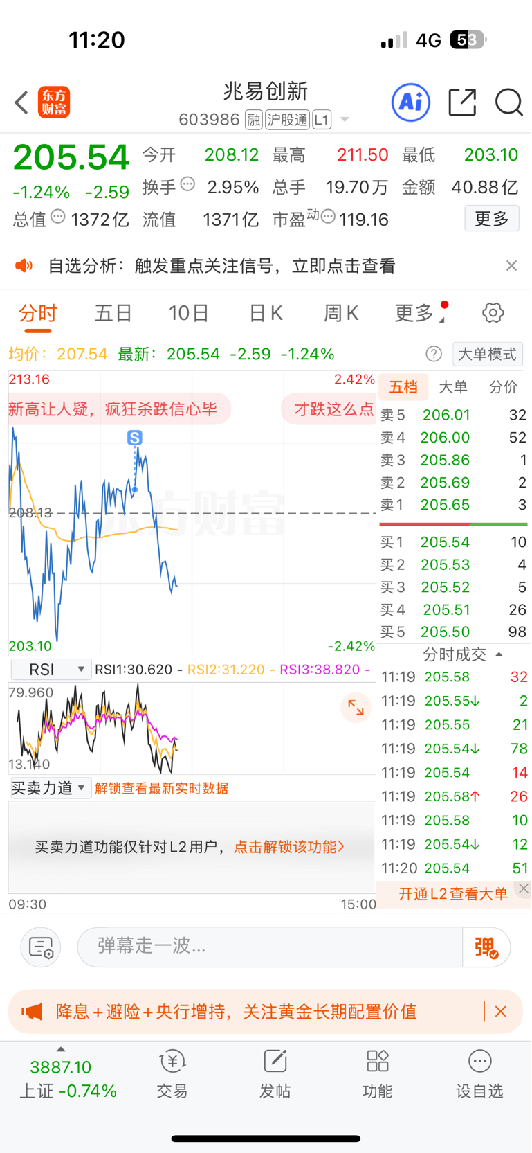 $兆易创新(SH603986)$ 刚开始以为卖飞,下午不知道还拉不拉