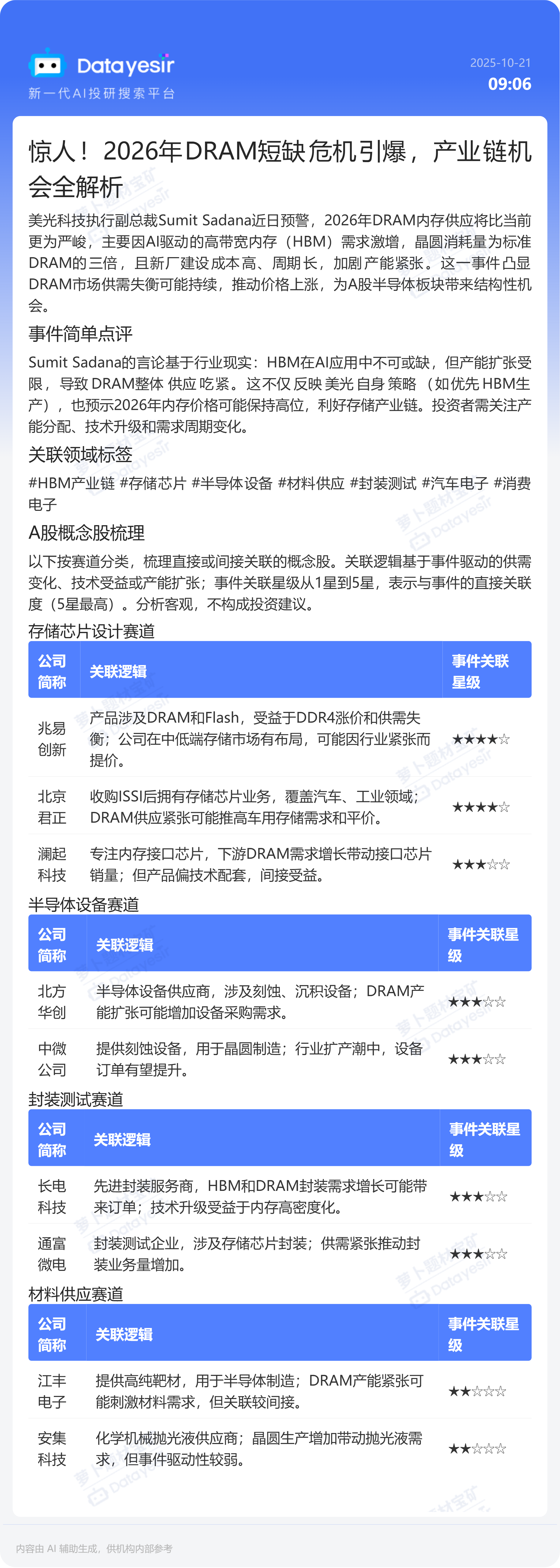 惊人!2026年DRAM短缺危机引爆,产业链机会全解析