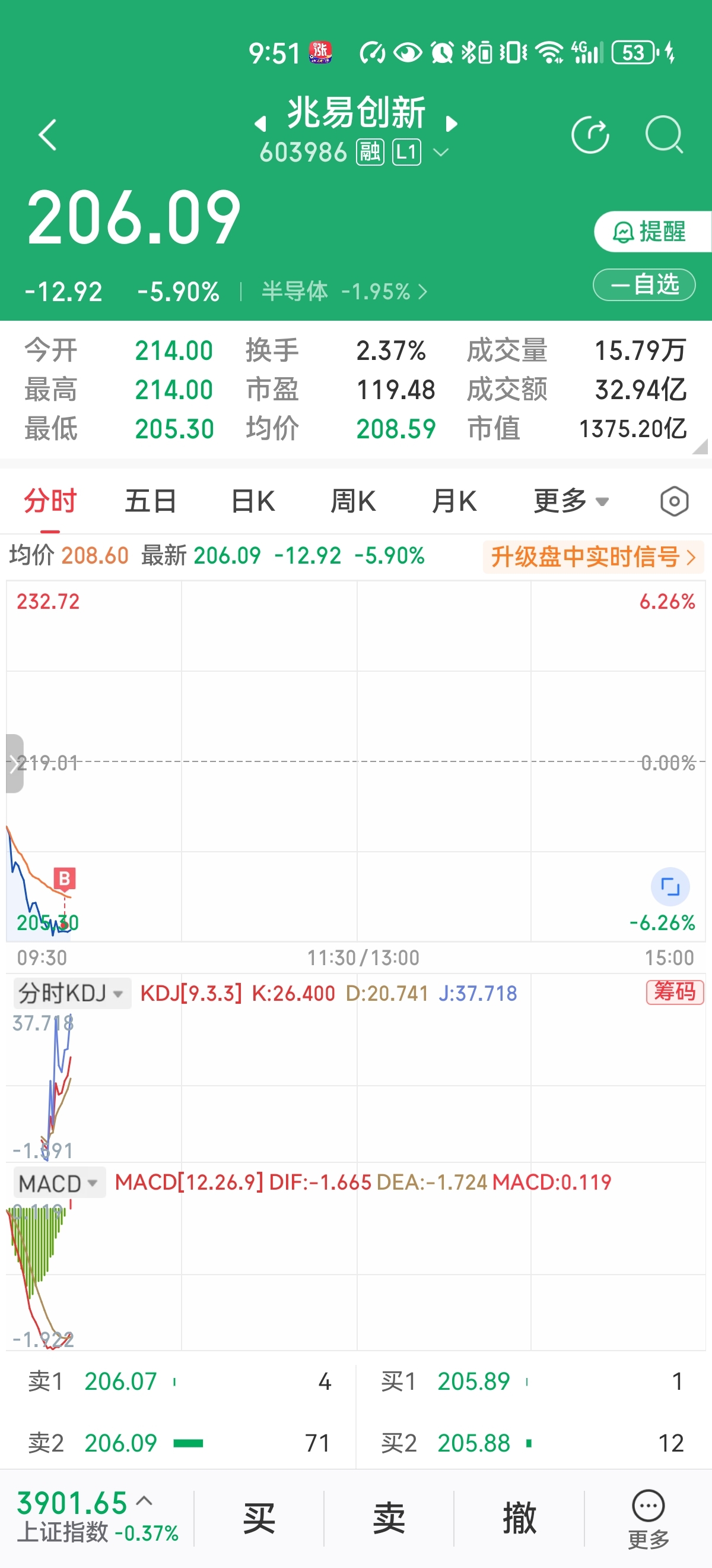 $兆易创新(SH603986)$ 昨天冲高走了,怕错过好股,现在接回来