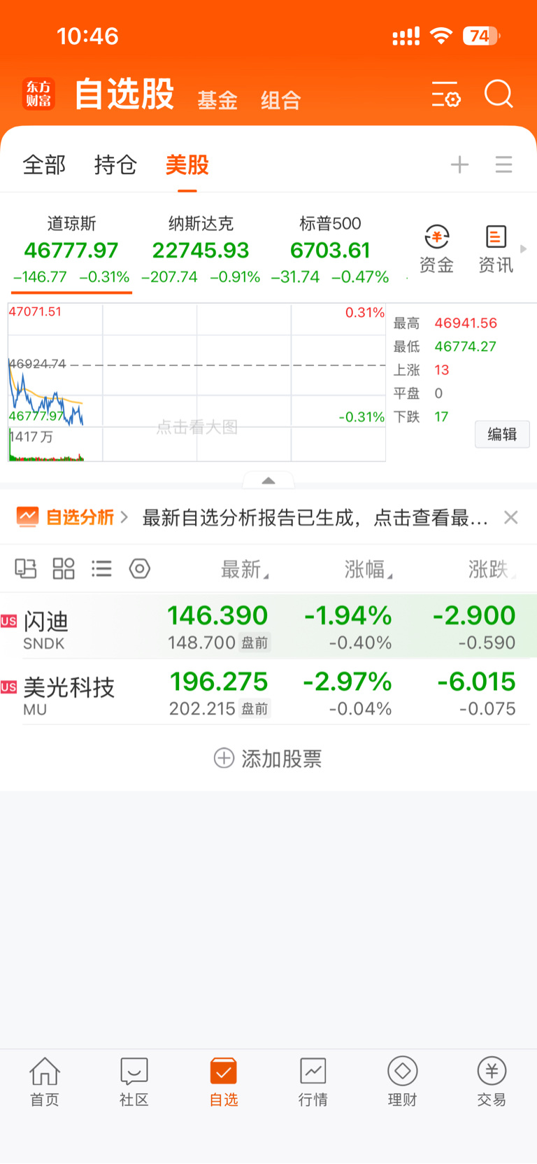 美光大跌,明天吃面的一天,高位接的心累。补仓