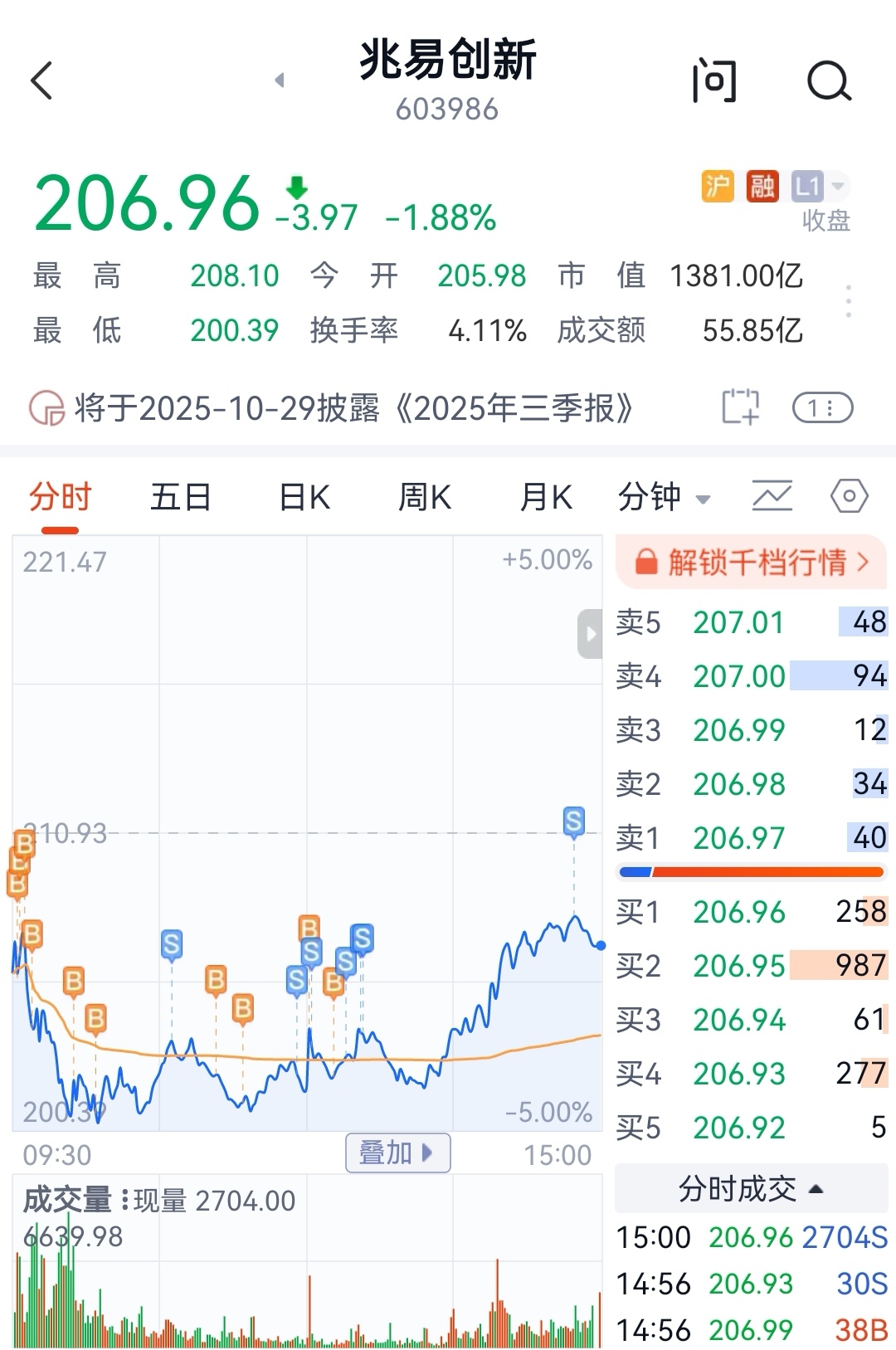 $兆易创新(SH603986)$ 下午飞机起飞前挂了个卖单,最后最高价成交了,是被主力识破了吗?