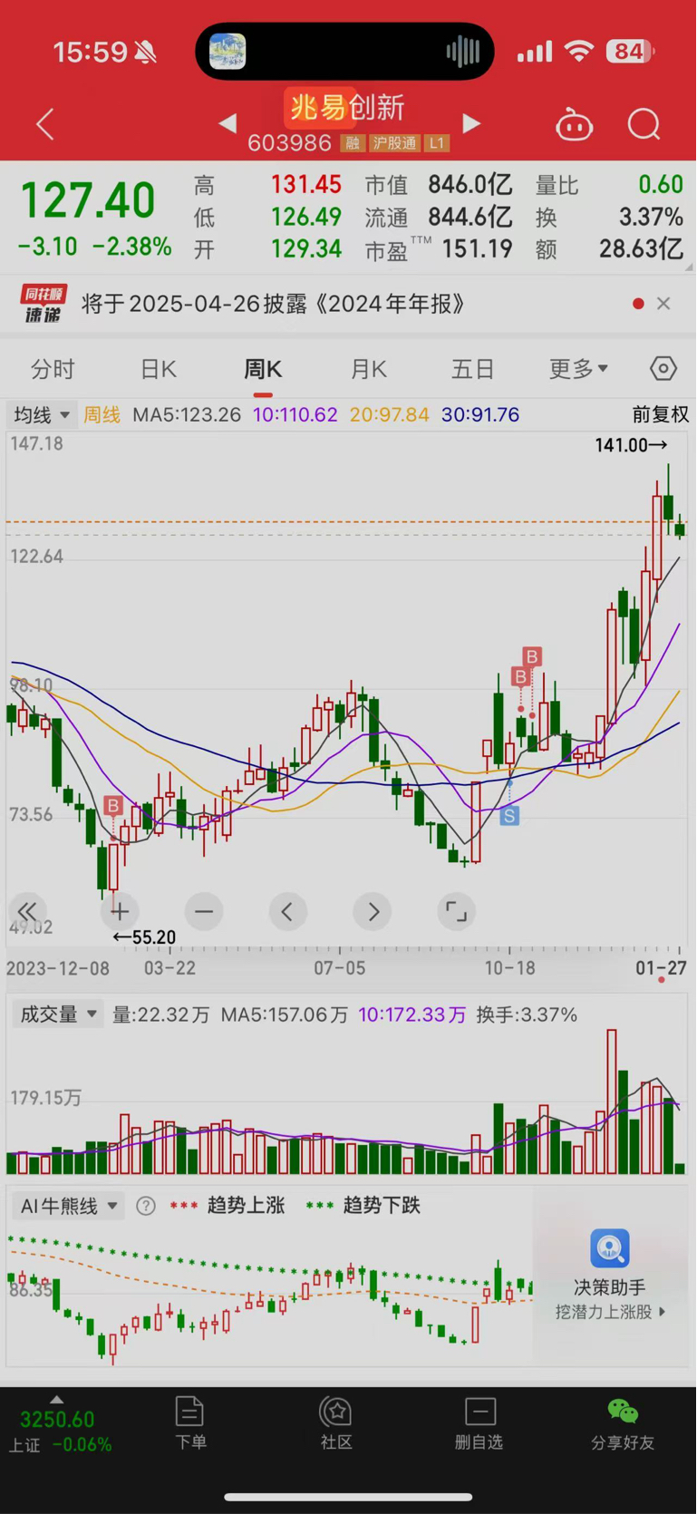 $兆易创新(SH603986)$ 留了1000股做纪念 看着赚了两倍多 实际小米寒武纪ppmt 都买少了,zy调仓任何一个都财富自由了 也是经验