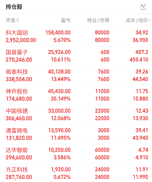 国盾量子,国盾量子在量子通信圈是绝对的龙头和先行者,技术源自中科大,科研背景深厚。核心技术团队来自中科大潘建伟院士团队 —— 这可是中国量子信息科学领域最顶尖的团队,有这背景,它在技术、人才、政策支持上都有别人比不了的优势。量子通信这赛道是真的香,主要解决信息传输的安全问题。现在数字经济时代,数据安全越来越重要,尤其是政务、金融、电力、国防这些关键领域,量子通信基本是刚需。十四五规划把量子信息列为前沿科技重点发展方向,政策支持很明确;东数西算、新基建这些国家级工程,也可能给它带来更多需求。它的核心产品有量子保密通信网络核心设备、单光子探测器、光量子交换机这些,已经用在京沪干线,武合干线等国内重大项目上,还在合肥、北京、上海建了城域量子通信网络,现在正往金融、政务、云服务等商业领域扩。作为 A 股里为数不多的纯正量子通信概念股,稀缺性很突出,容易吸引看好未来科技的资金。今天收了 7.5%,表现还算稳。