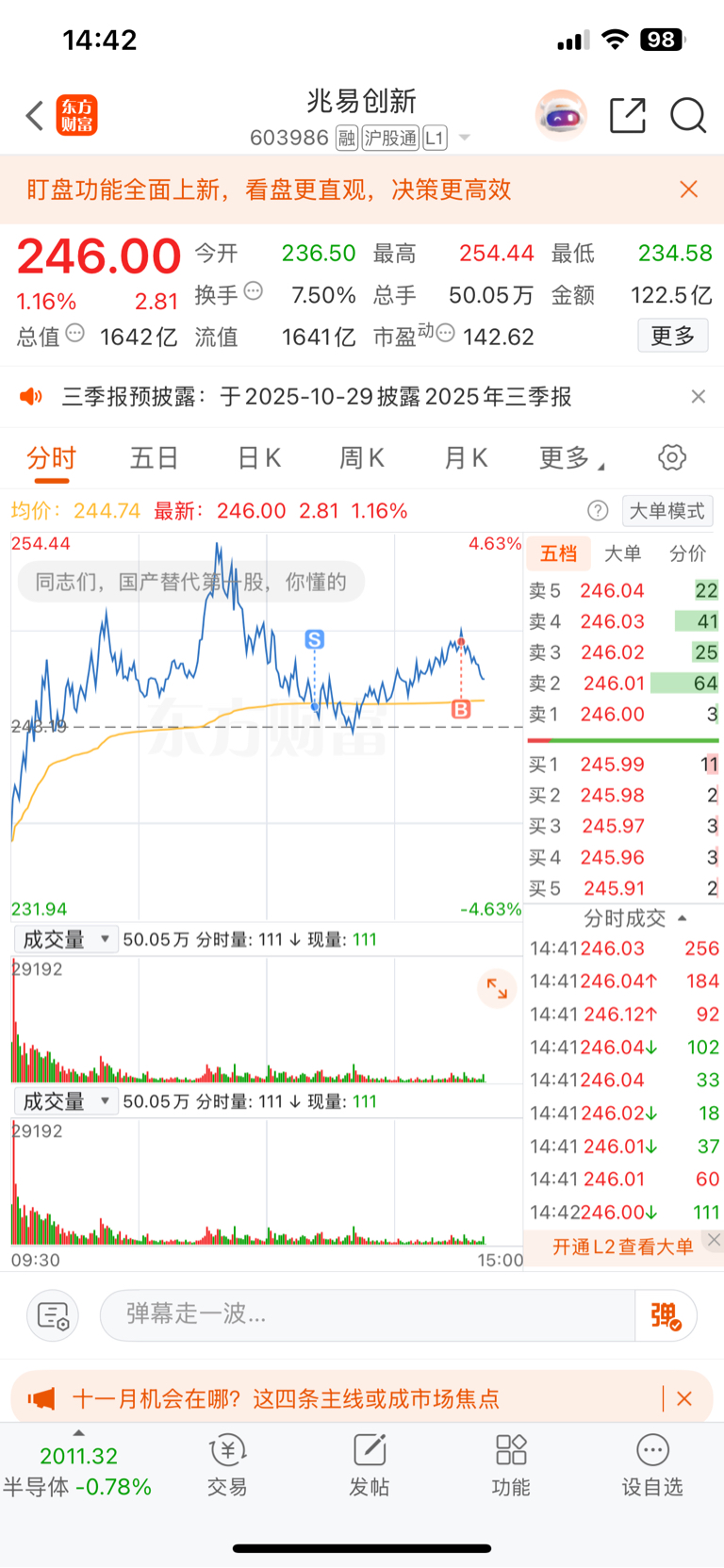 $兆易创新(SH603986)$ 这特么。。。反T成功