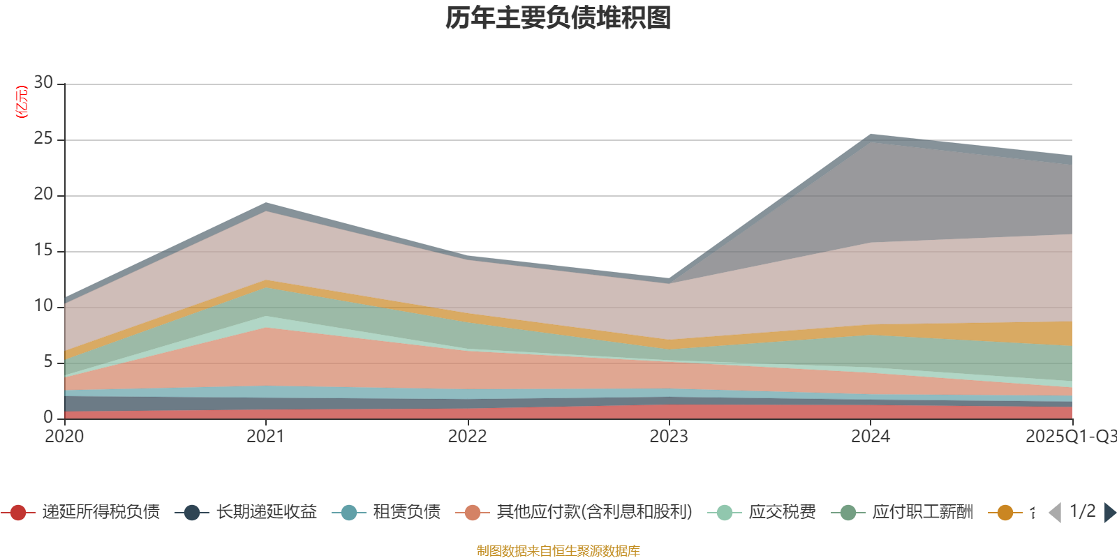 负债重大变化方面,截至2025年三季度末,公司短期借款较上年末减少31.02%,占公司总资产比重下降1.69个百分点;其他应付款(含利息和股利)较上年末减少61.85%,占公司总资产比重下降0.64个百分点;合同负债较上年末增加131.95%,占公司总资产比重上升0.56个百分点;递延所得税负债较上年末减少13.46%,占公司总资产比重下降0.12个百分点。