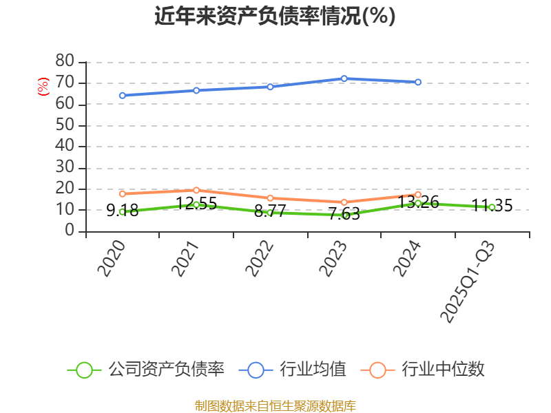 2025年前三季度,公司流动比率为6.34,速动比率为5.15。