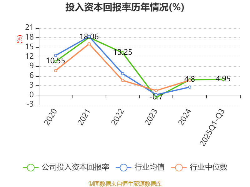 盈利能力方面, 2025年前三季度公司加权平均净资产收益率为6.3%,同比上升0.96个百分点。公司2025年前三季度投入资本回报率为4.95%,较上年同期上升1.15个百分点。