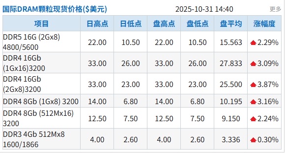 DRAM颗粒继续涨涨DDR4涨幅领先!整体本周DRAM涨幅很大!四季度存储继续量