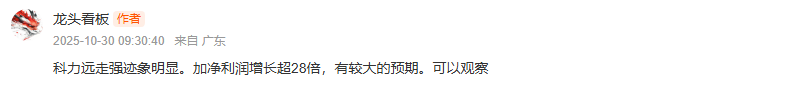 科力远周五表现不错,冲高后虽有回落,但量能维持高位。该股营收、利润双增,其中利润暴增28倍,业绩红利还未完全走完。当下储能赛道景气,该股多头强劲,周五猪力也呈流入态势。经过连续两日回落整理,抛压和浮筹已有效清理,预计今天有望在当前位置企稳,继续向上运行。说不定还能破前高创新高呢