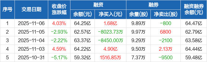 兆易创新:融资余额64.25亿元,创历史新高(11-06)