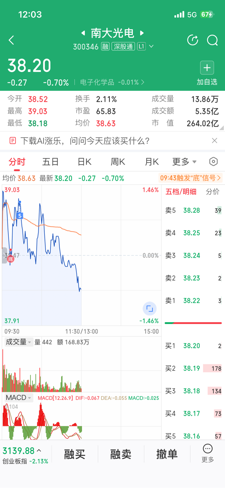 早上感觉半导体板块拉高出货了,出了南大光电,没舍得出兆易创新,一个非常愚蠢的决定