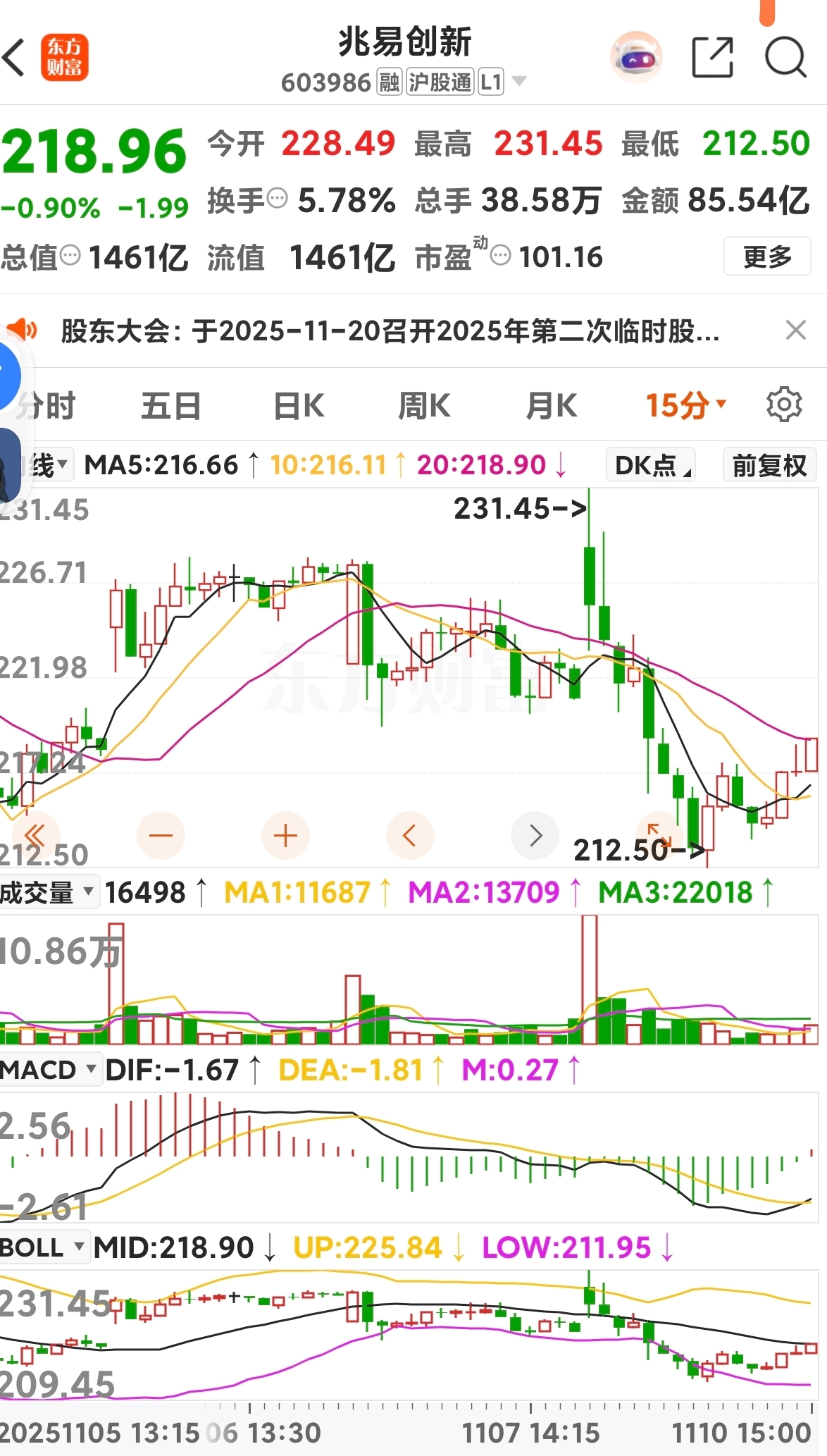 $兆易创新(SH603986)$ 罩衣短线具备反弹能力,第一看222,第二看231.45。看好反包。