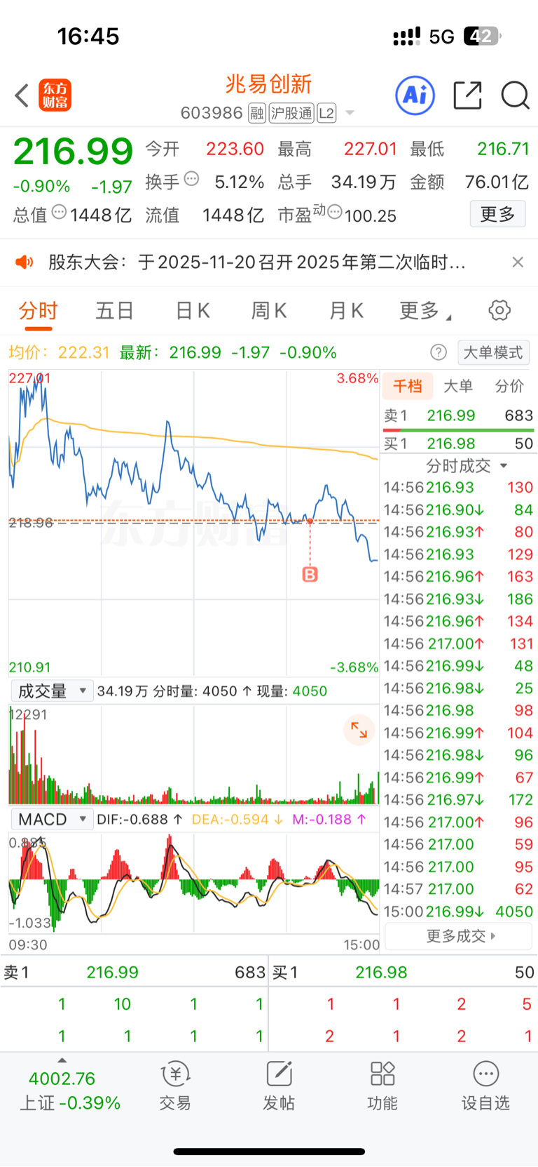 $兆易创新(SH603986)$ 我都觉得要拉尾盘了,果断零轴进了,结果尾盘给我来了个跳水,还好没全仓,留着明天水下加仓