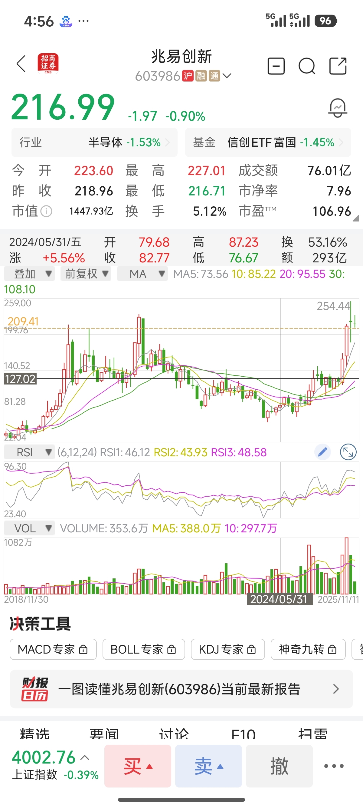 $兆易创新(SH603986)$ 明天成本线有点悬了