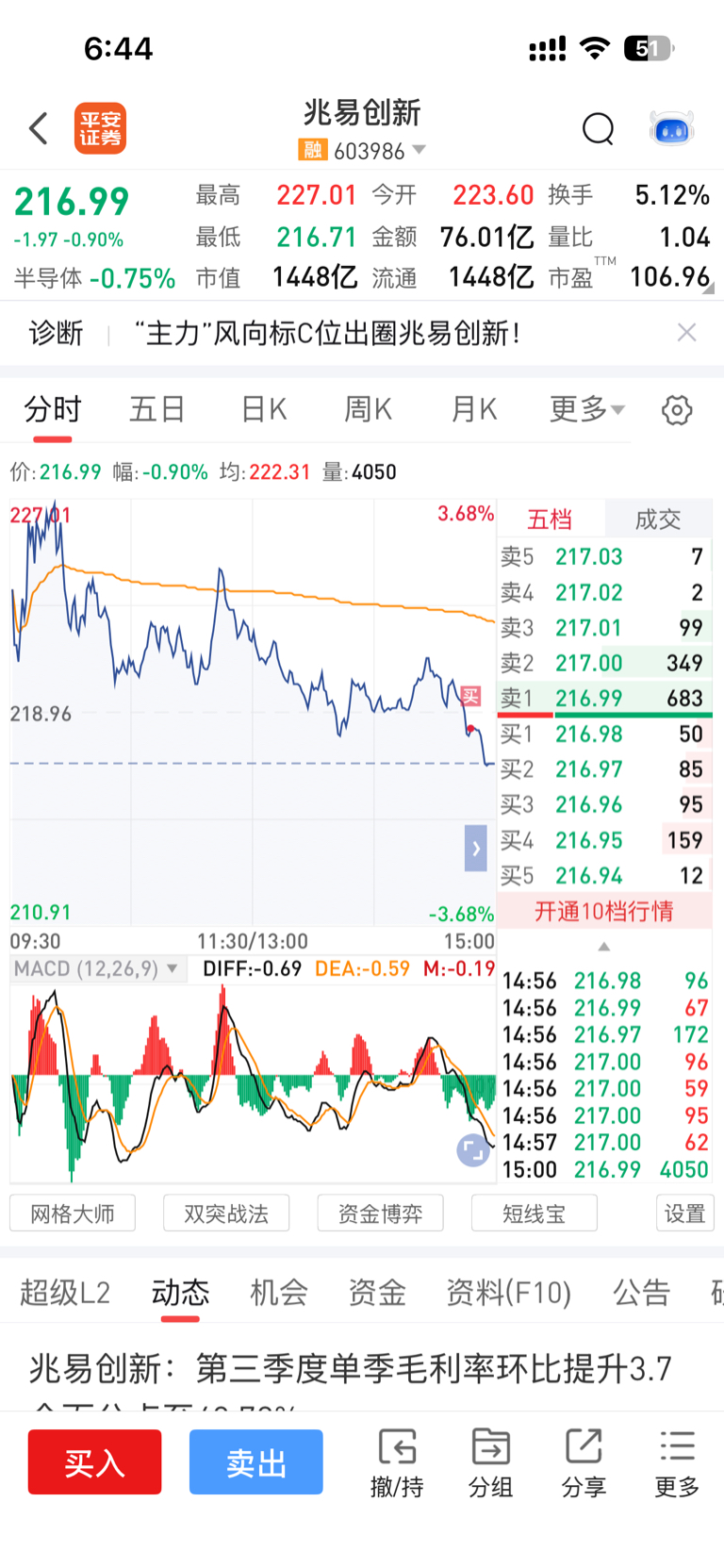 $兆易创新(SH603986)$ 发个公告,又开始意涨停了,明天隔空低开,因为我买了,每次买第二天都是隔空低开